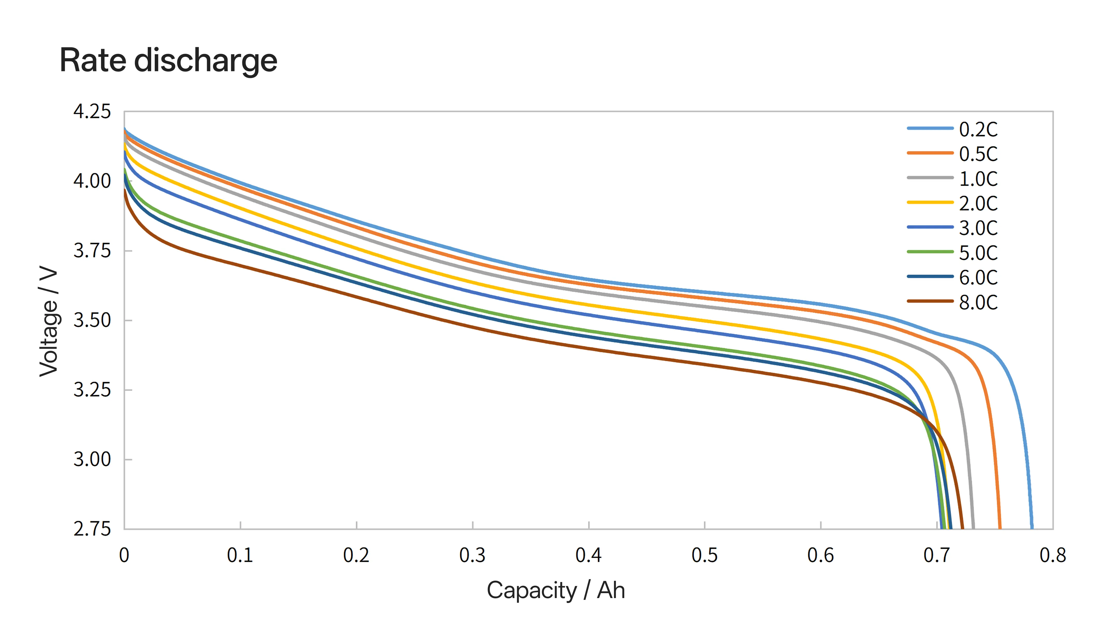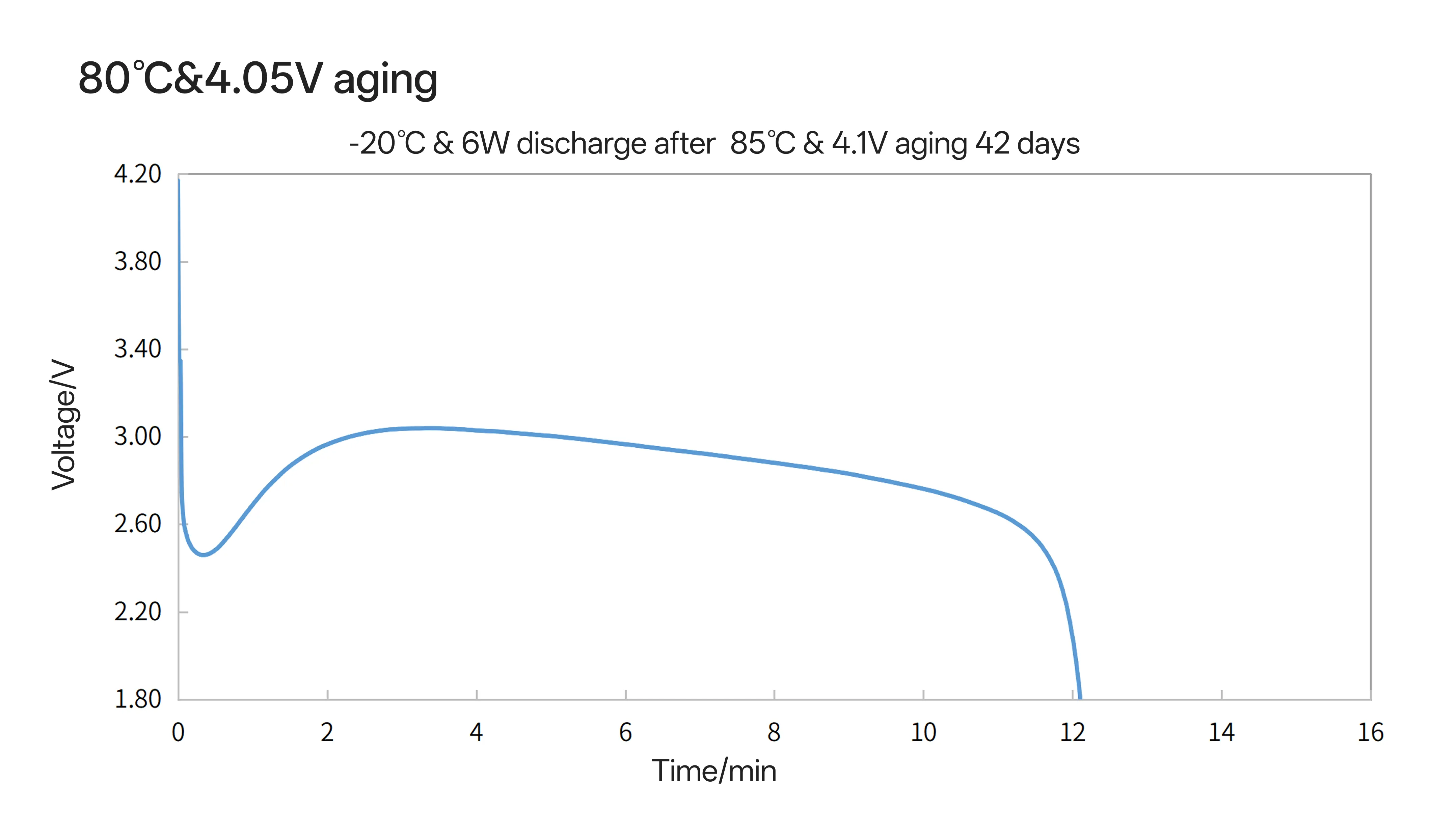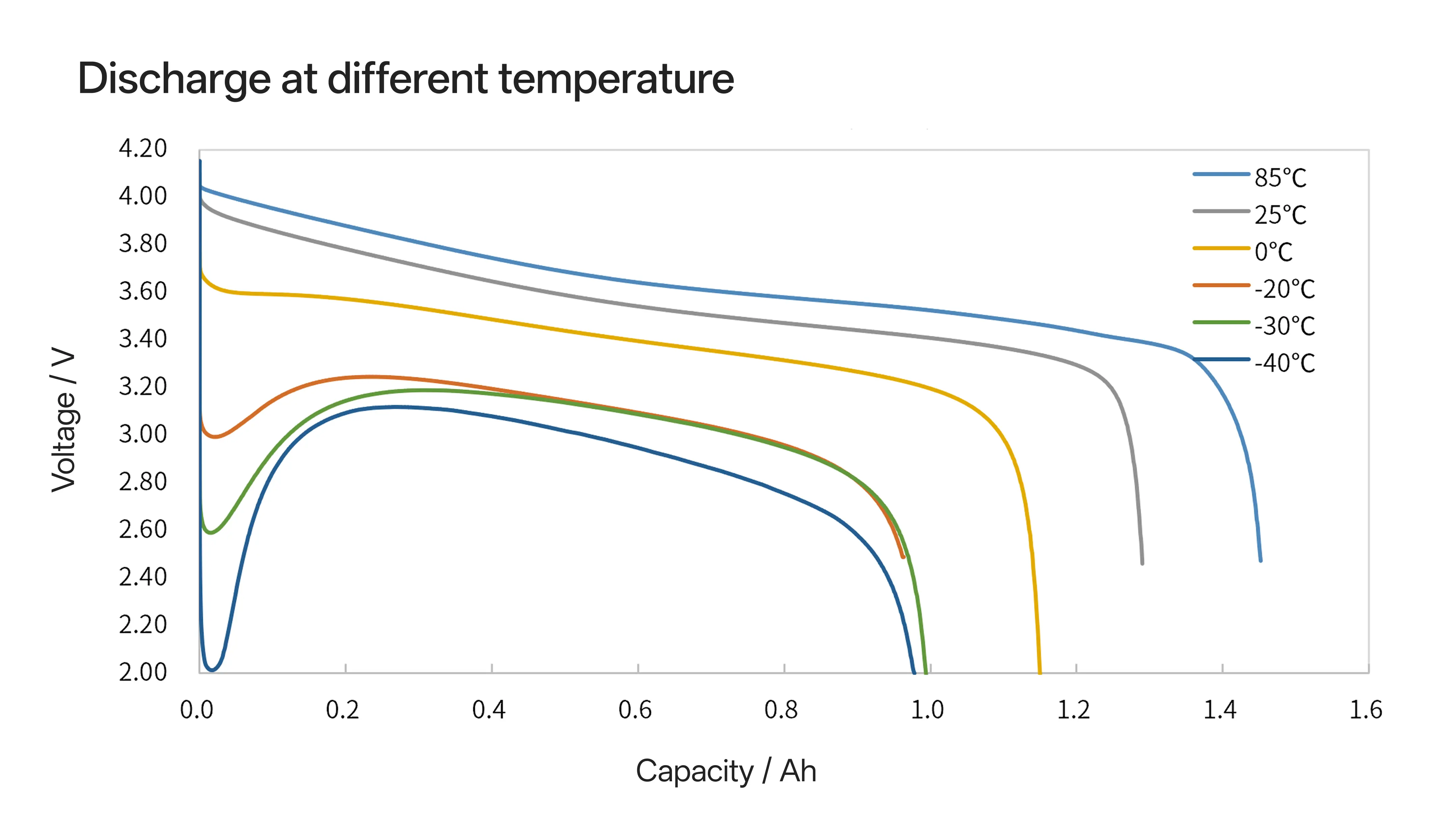 Delivers 3.9V/6W at -20°C, even after high-temperature storage.