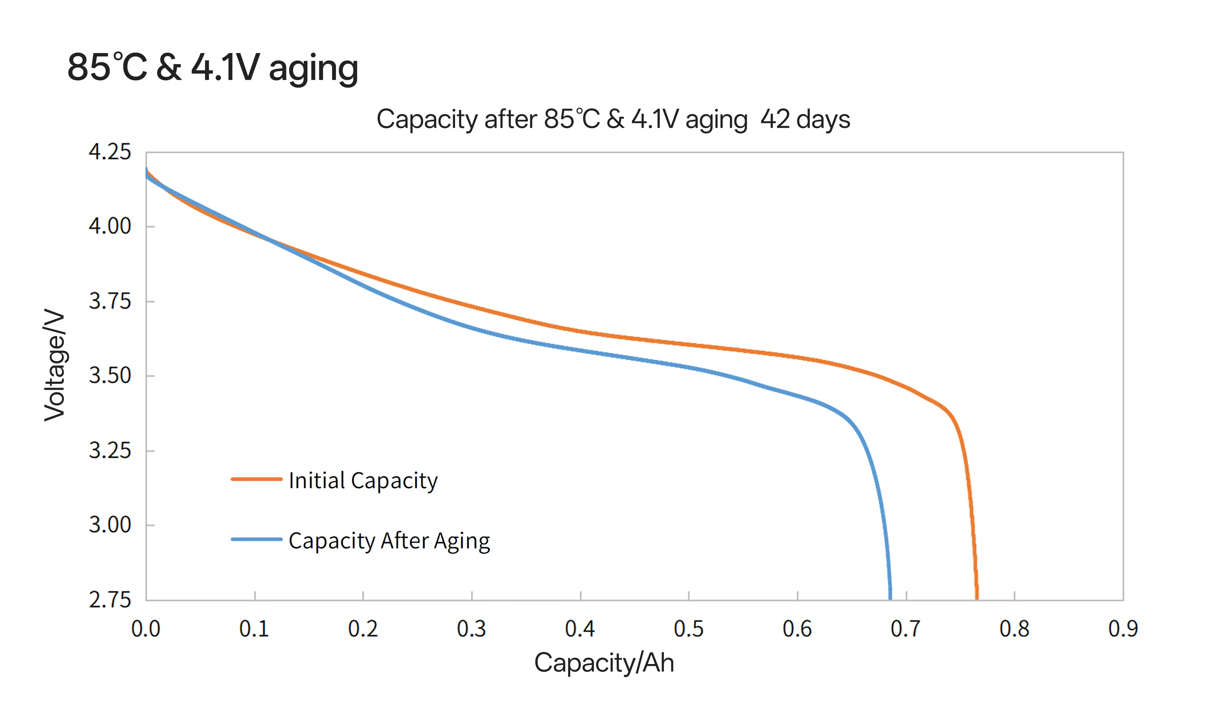 Retains over 90% capacity and 3.80V OCV after 48 days at 80°C for reliable performance.
