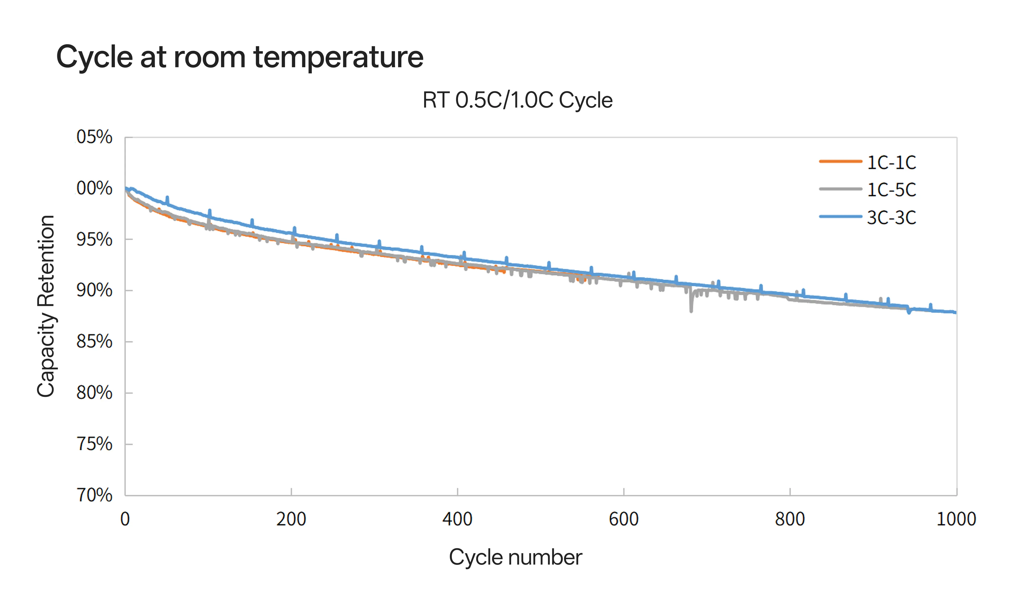 Retains over 80% capacity after 1000 cycles, ensuring long-term reliability.