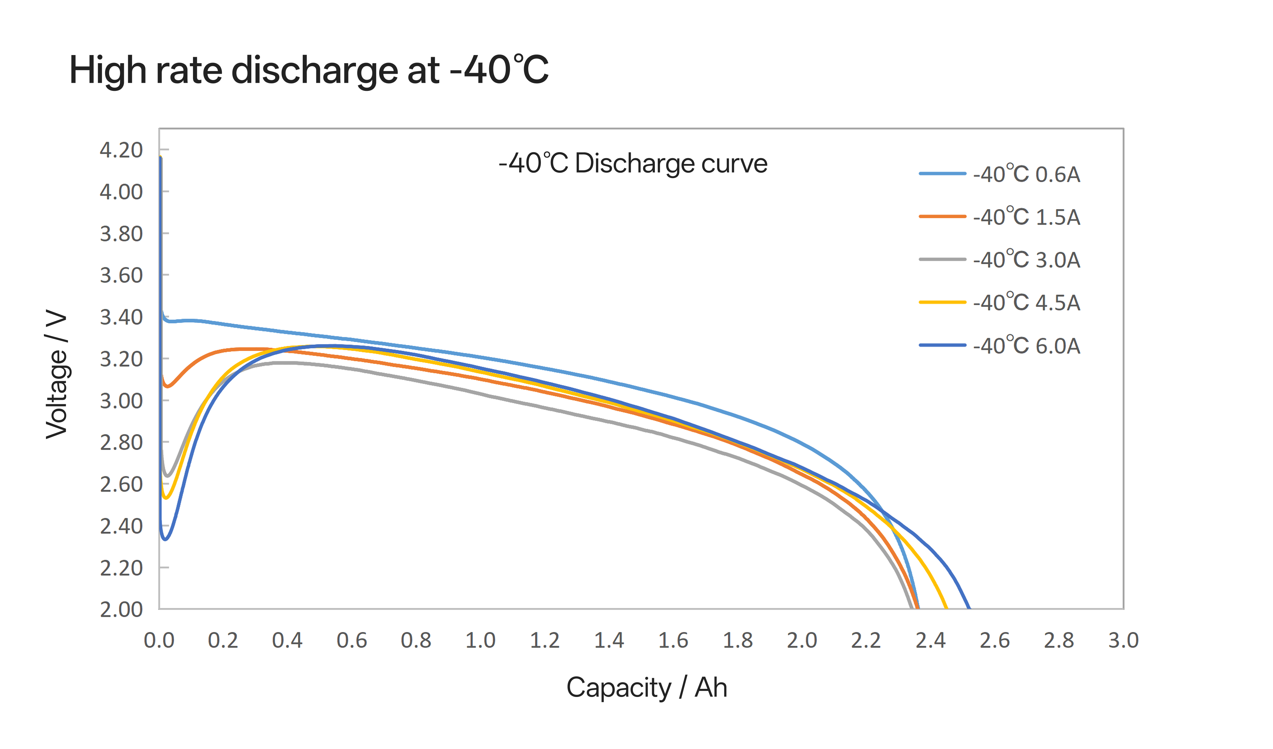 Maintains reliable discharge at -30°C after high-temperature storage, meeting freezing conditions.