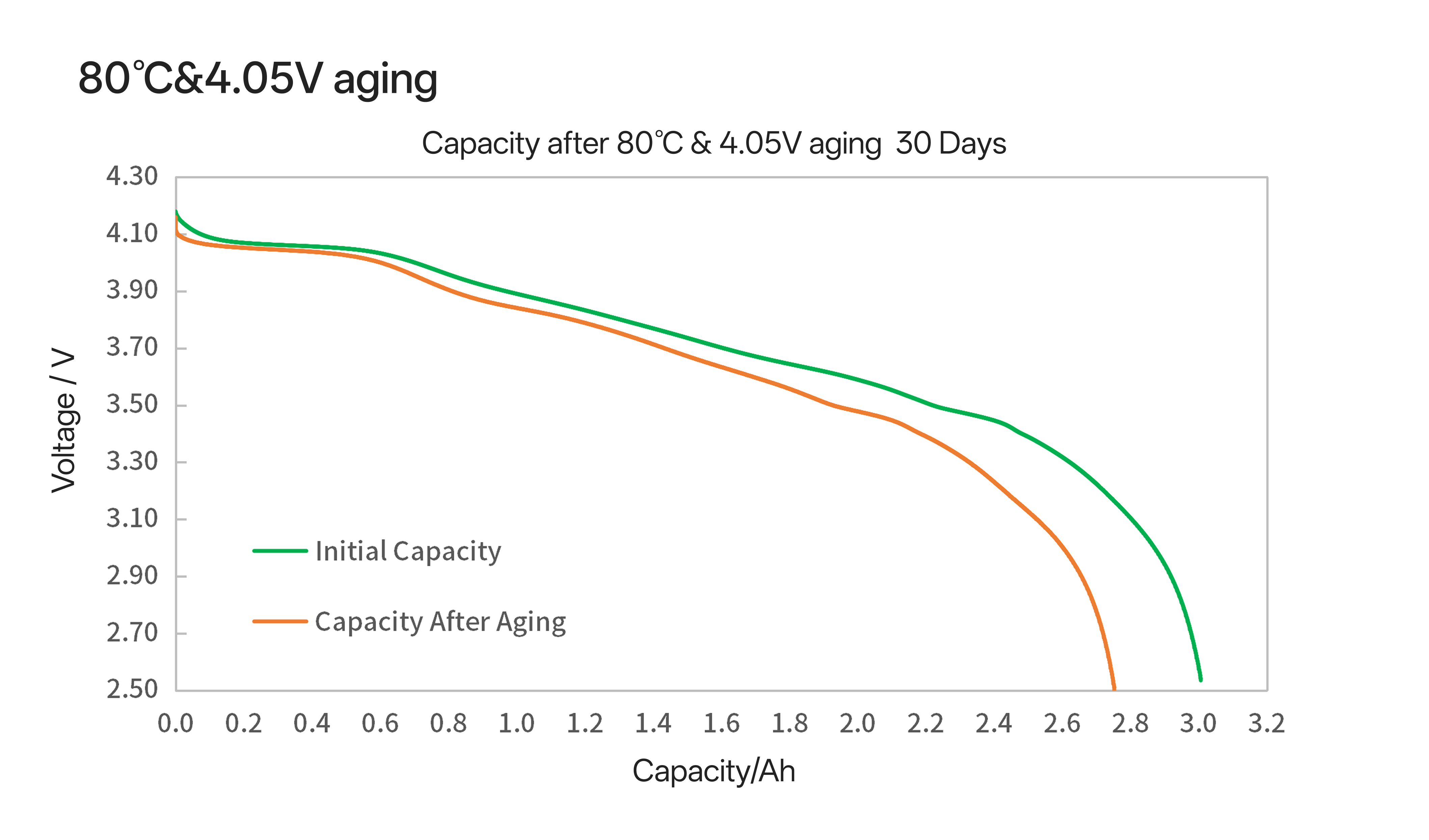 Retains 80% capacity and 3.90V voltage after 32 days at 80°C, ensuring consistent performance.